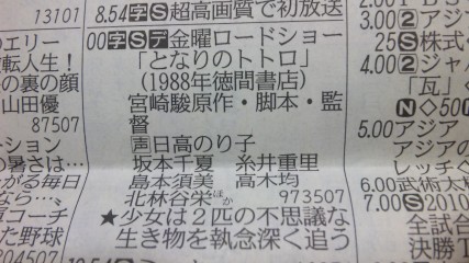 少し前に、中日新聞のテレビ欄に、面白いことが書いてありました。